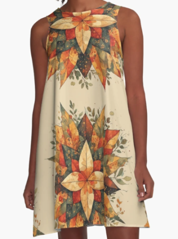 Fun and colorful autumn colored star design on a A-Line Dress.