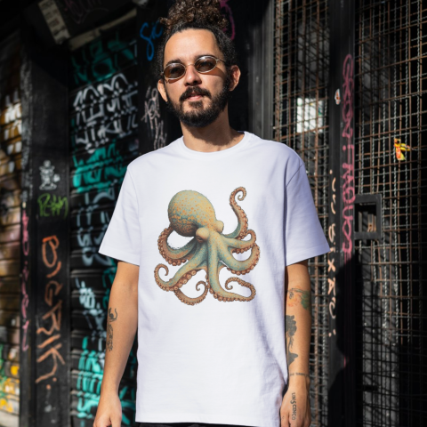Fantasy Mythical Creator Octopus design on Oversized T-Shirt.