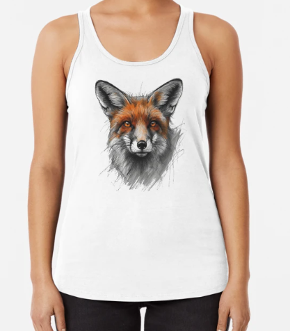 A sketch like design of a Red Fox on a race back tank top.