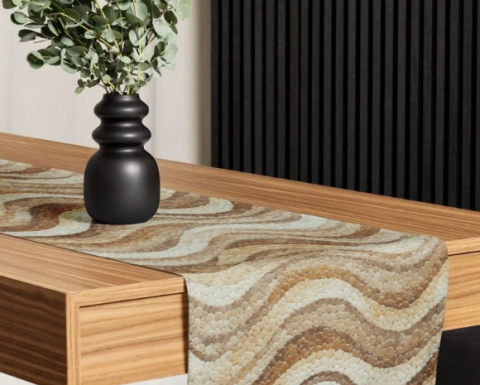 An Abstract Beige Wavy Line Table Runner.