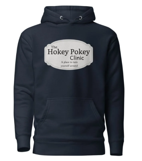 Cozy Pullover Hoodie with "The Hokey Pokey Clinic" design on the front.