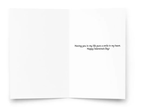 Inside Card: " Having you in my life puts a smile on my face. Happy Valentine's Day!".